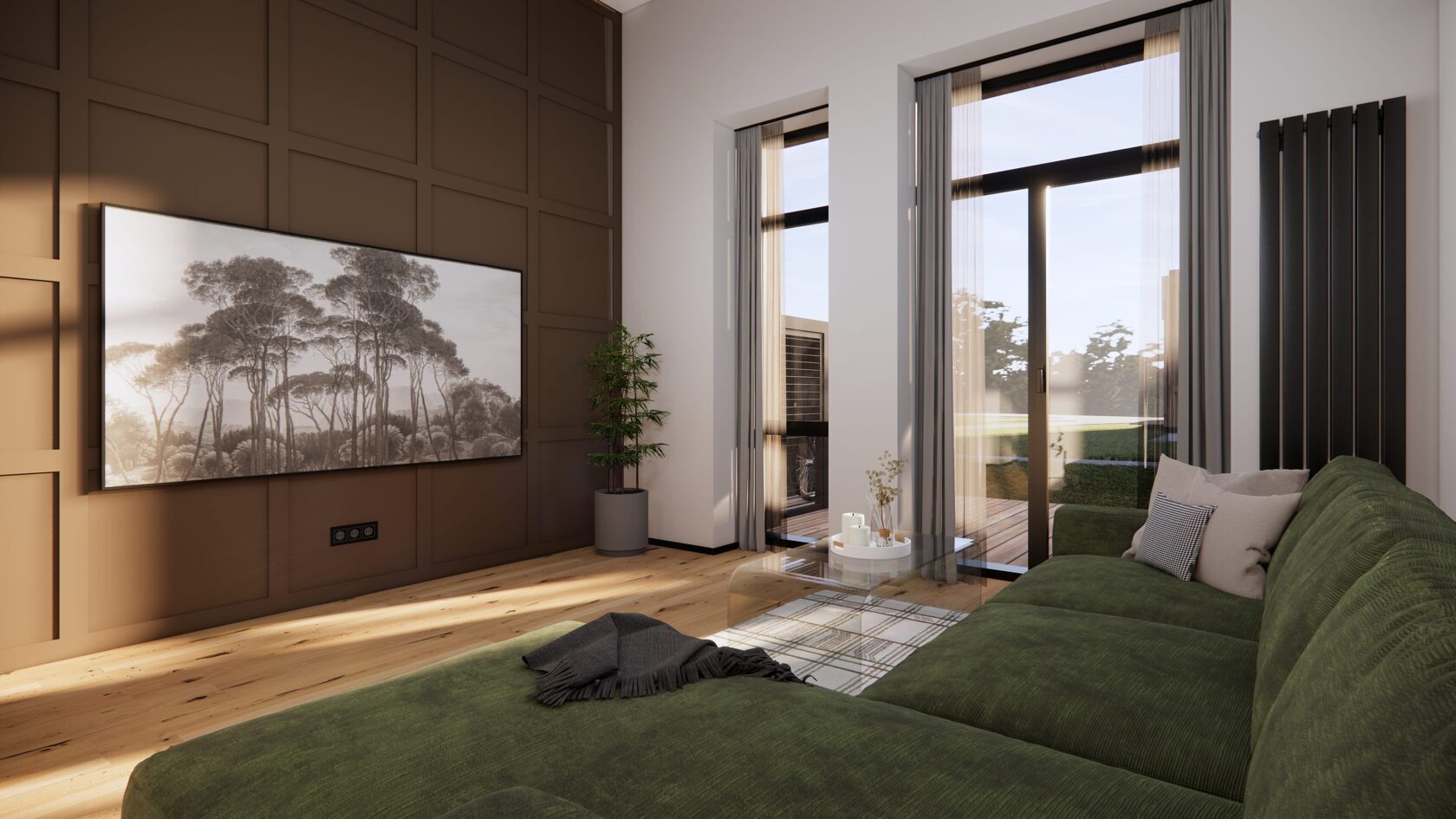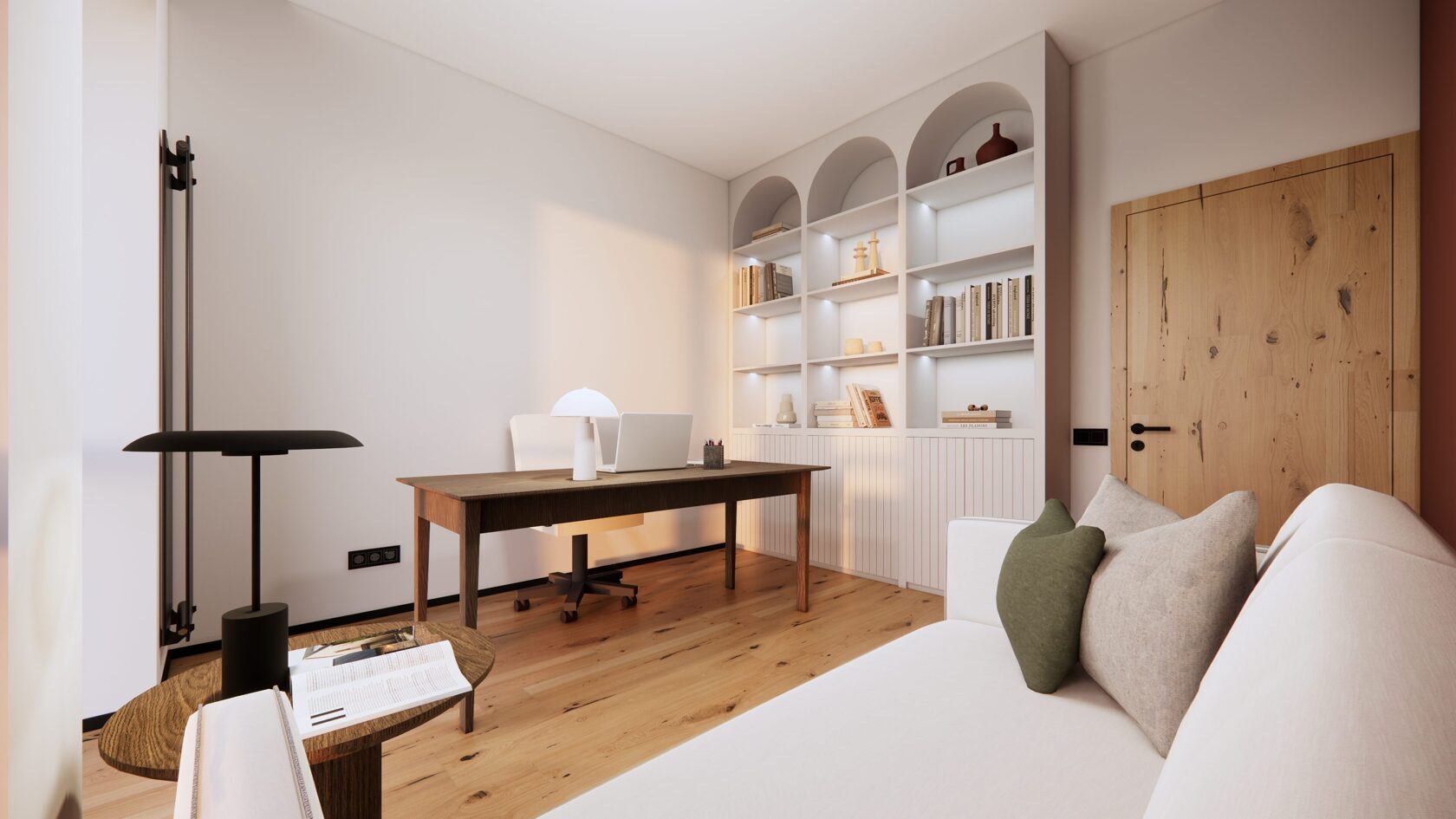 Dzīvoklis (92.35m2 ) ir veidots pēc mūsdienīga dizaina principiem, respektējot vēsturiskās pilsētas dekoratīvo stilu un tās bagātīgo dabu. Konceptuālais interjera projekts ietver divus pilnībā mēbelētus stāvus ar priekšnamu, vannas istabu, virtuvi, ēdamistabu un dzīvojamo istabu, kā arī privātu terasi pirmajā stāvā, bet mājas biroju, guļamistabu un otru vannas istabu otrajā stāvā. Dzīvokļa pamatā ir dabiskas krāsas un materiāli, piemēram, gaiši pelēkie toņi un koks. Tā akcenti ir spilgtas kontrastējošas krāsas, piemēram, tumši zila, meža zaļa un rūsgani sarkana, un ģeometriskas formas, piemēram, arkas, apļi un dažādas stūrainās formas